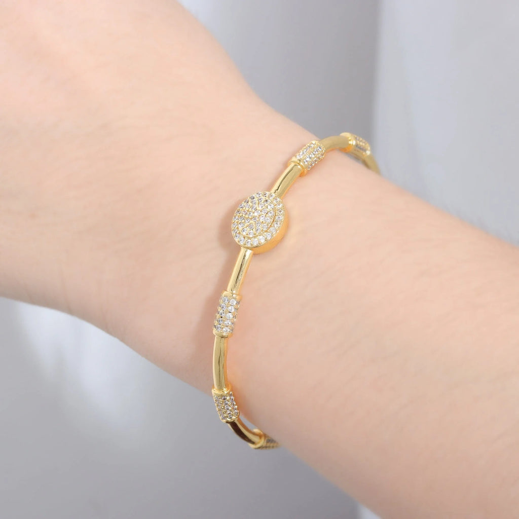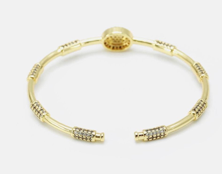 Este bracelete é finamente cravejado com zircônias de alto brilho, garantindo sofisticação e elegância em cada detalhe.
