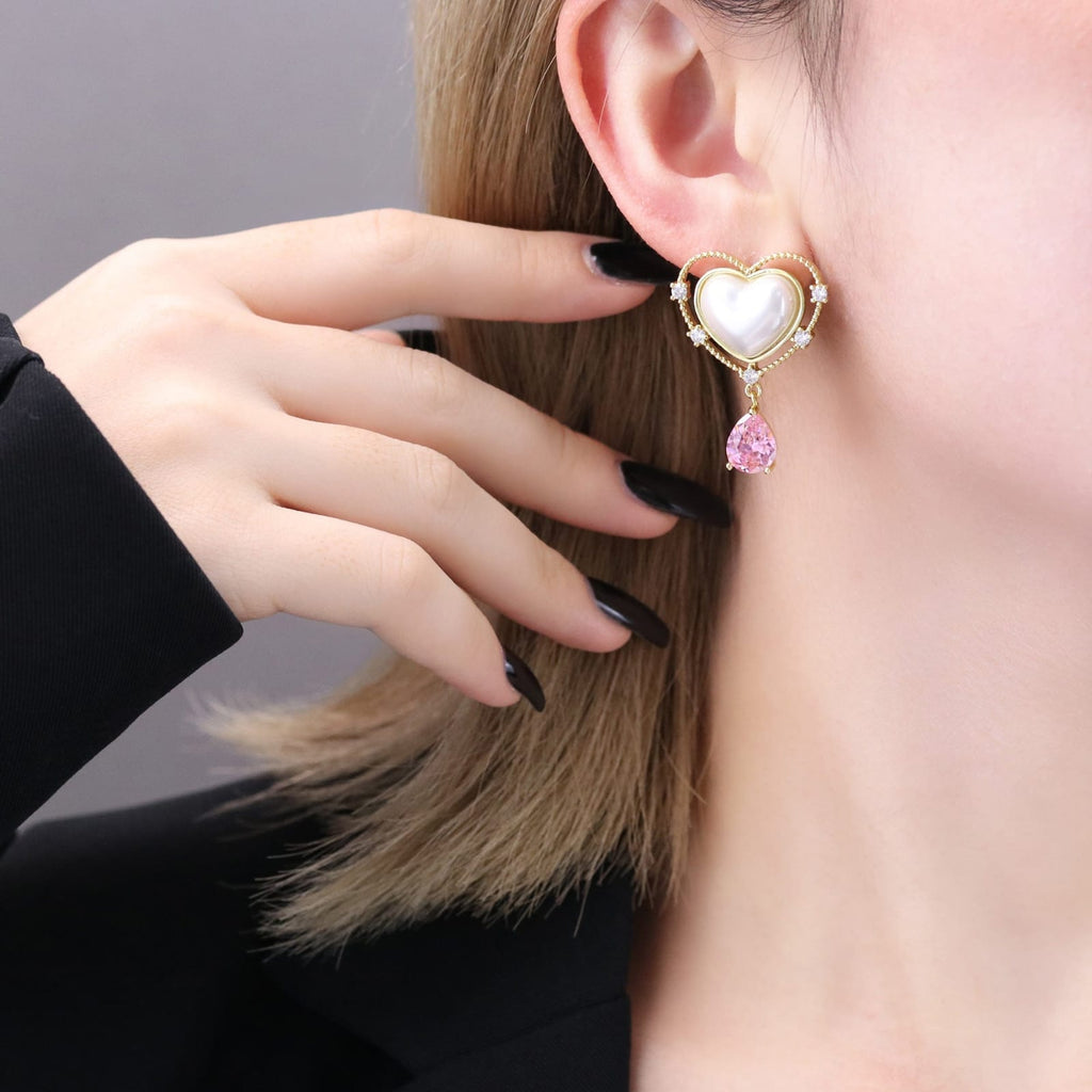 Brinco Coração Madre Pérola com Gota – A Elegância que Encanta
