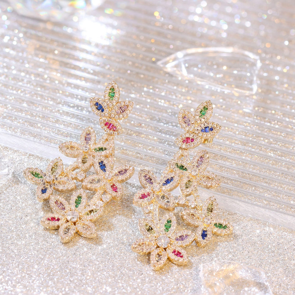 Inspirado na beleza natural das flores, este brinco combina design delicado com brilho marcante. Cada pétala é cuidadosamente trabalhada e cravejada com zircônias de alta qualidade, criando um efeito luminoso que ilumina o rosto.