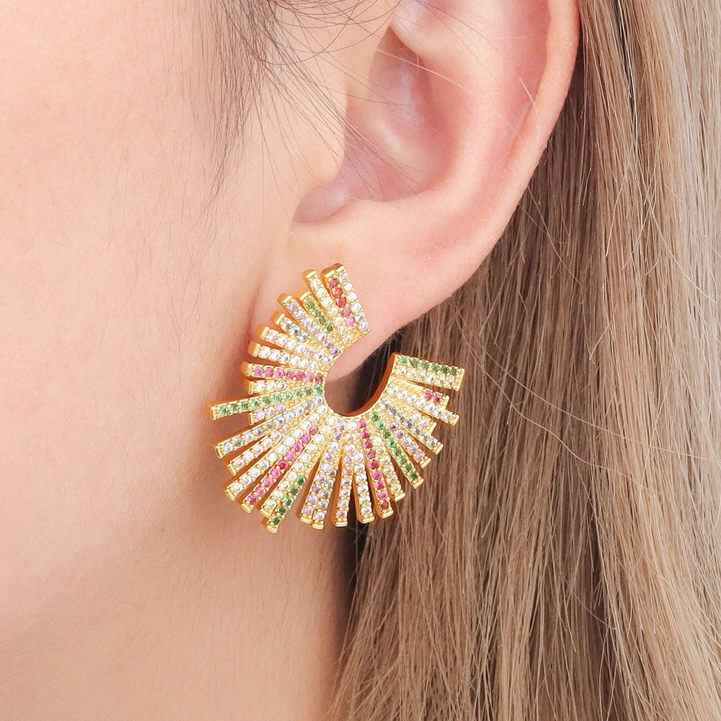 O Brinco Leque é sinônimo de sofisticação. Com design inspirado no movimento delicado dos leques, ele traz linhas harmoniosas e acabamento impecável que refletem a luz de forma única. Produzido em metal de alta qualidade e banho em ouro 18K, é a peça ideal para quem busca um acessório elegante e versátil.