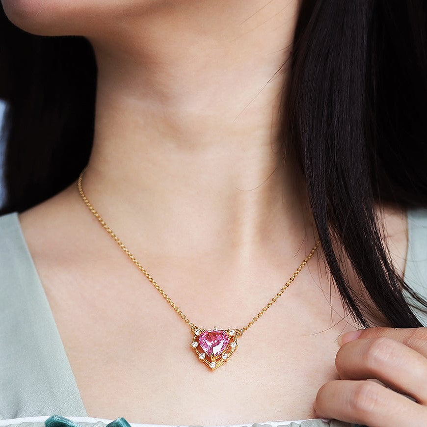 Colar com pingente cravejado manualmente com zircônia 5A premium, cristal lapidado e hipoalérgico na opção de banho Ouro 18k.