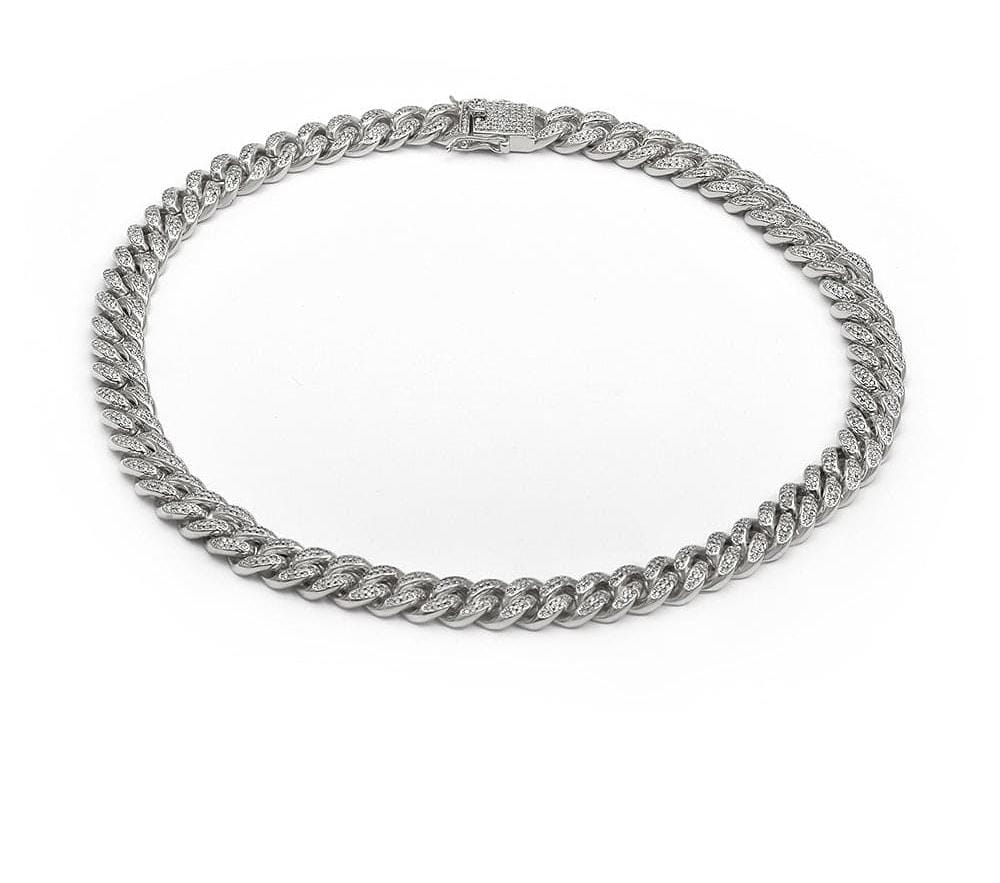Seus elos robustos são totalmente cravejados com zircônias, criando um efeito luminoso e glamouroso que transforma qualquer produção.