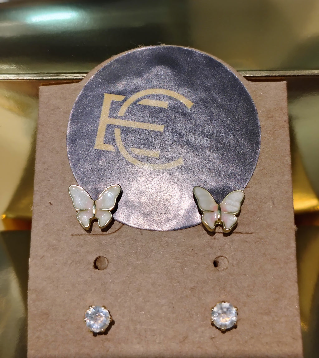 Perfeitos para quem ama versatilidade, estes brincos unem beleza e elegância em designs inspirados na delicadeza das borboletas. Use juntos ou separados e transforme qualquer look com um toque de encanto.