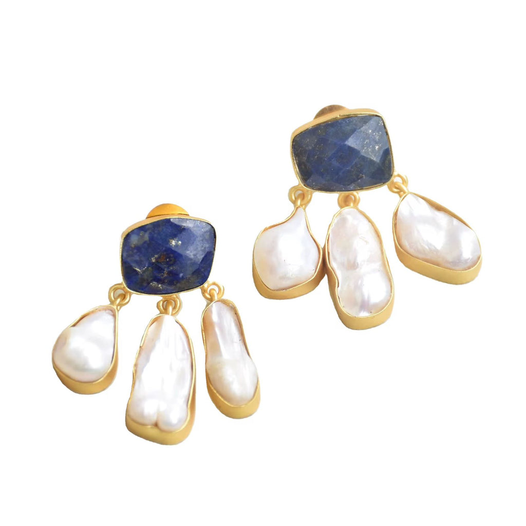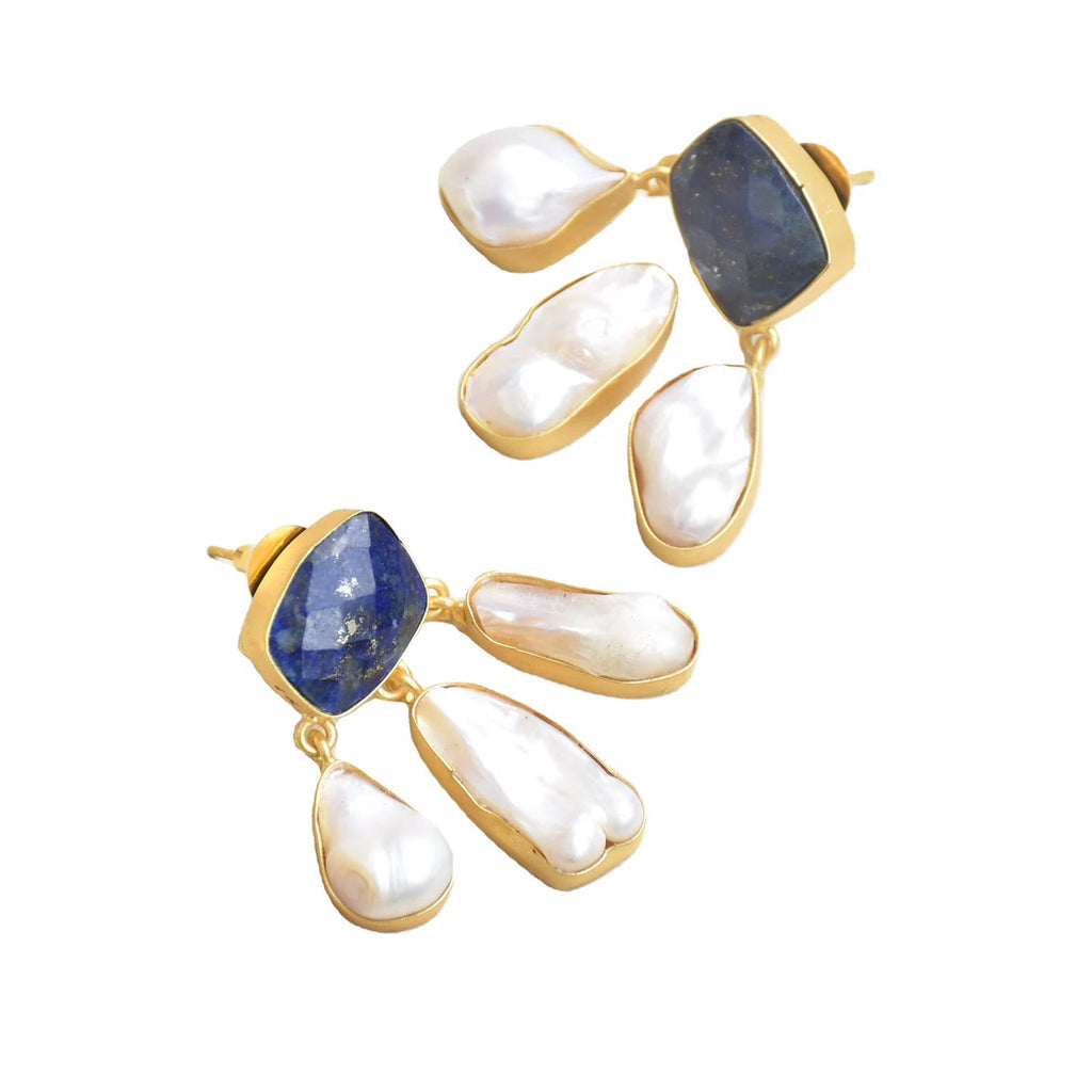 Pedra incrustadas artesanalmente, onde seu diferencial está na cravação, na luminescência única da pedra azul de Citrino e irradiante das perolas de água doce .