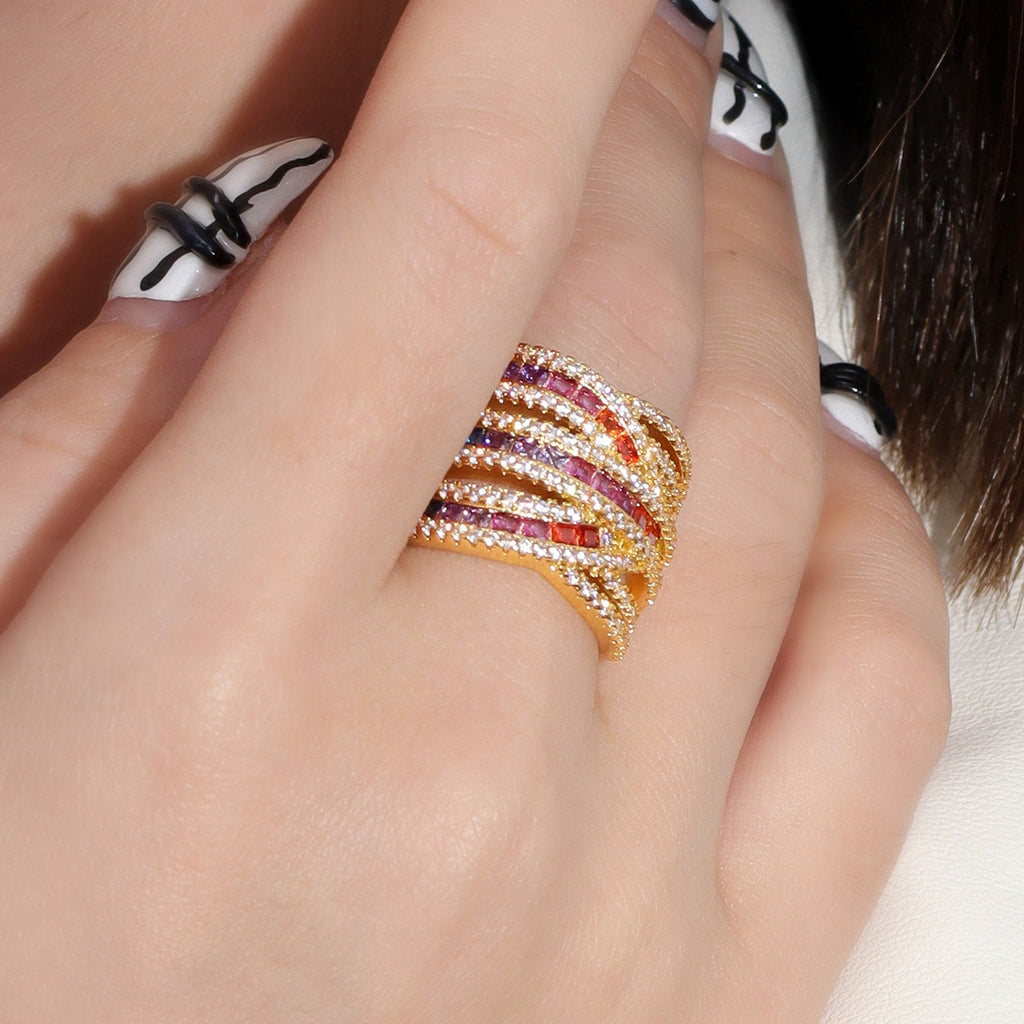 Anel Caminhos com Zircônia e Carrês