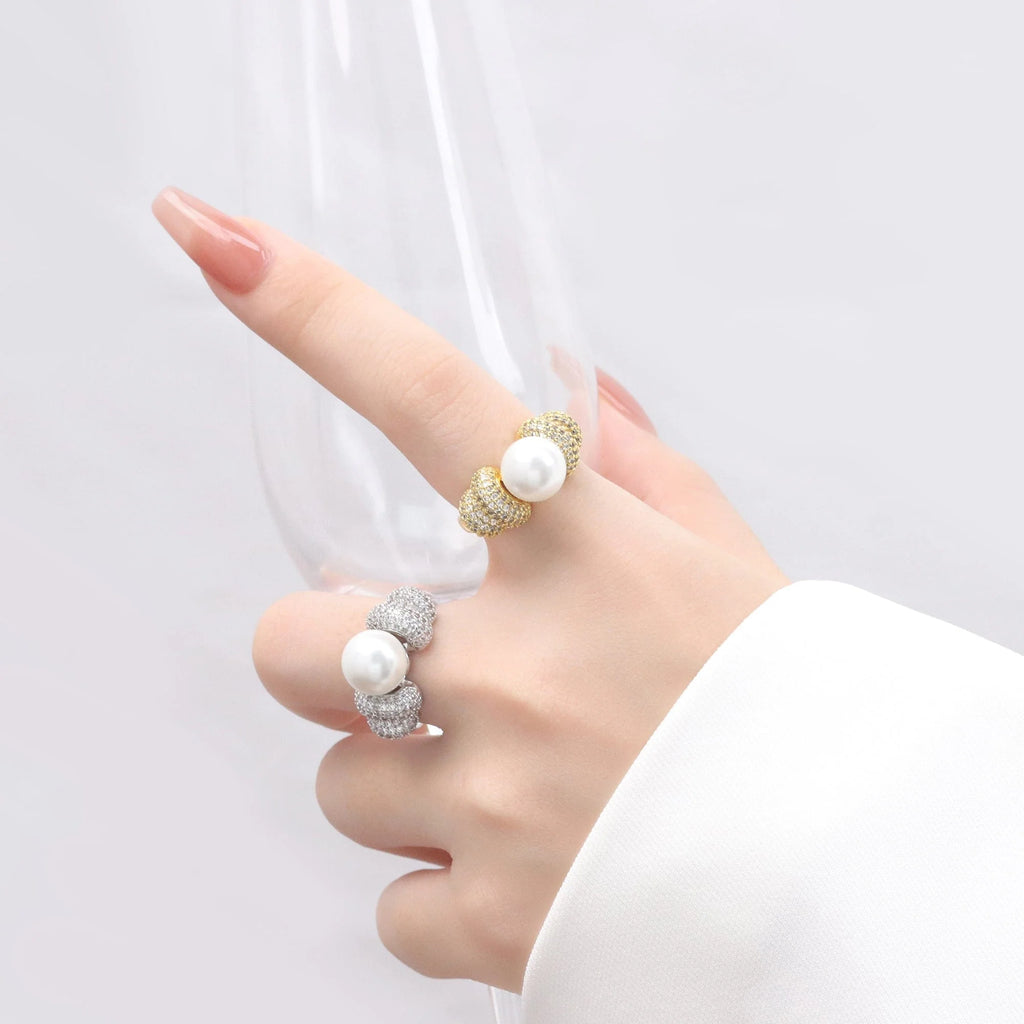 Clássico, feminino e cheio de significado. O Anel Cravejado com Pérola é a combinação perfeita entre a pureza da pérola e o brilho sutil das pedras cravejadas. Com design atemporal, essa peça traduz elegância e suavidade em cada detalhe.